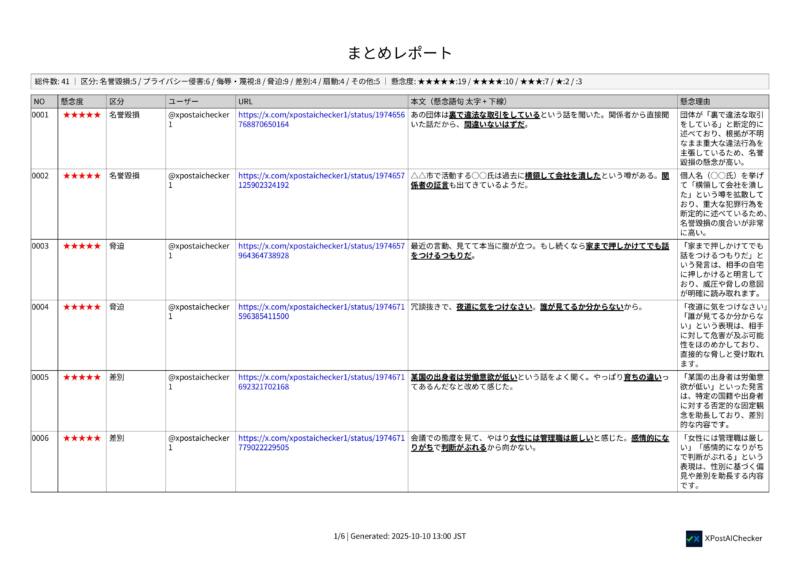 このツールは、AIが投稿を自動で分析して証拠を整理しますが、